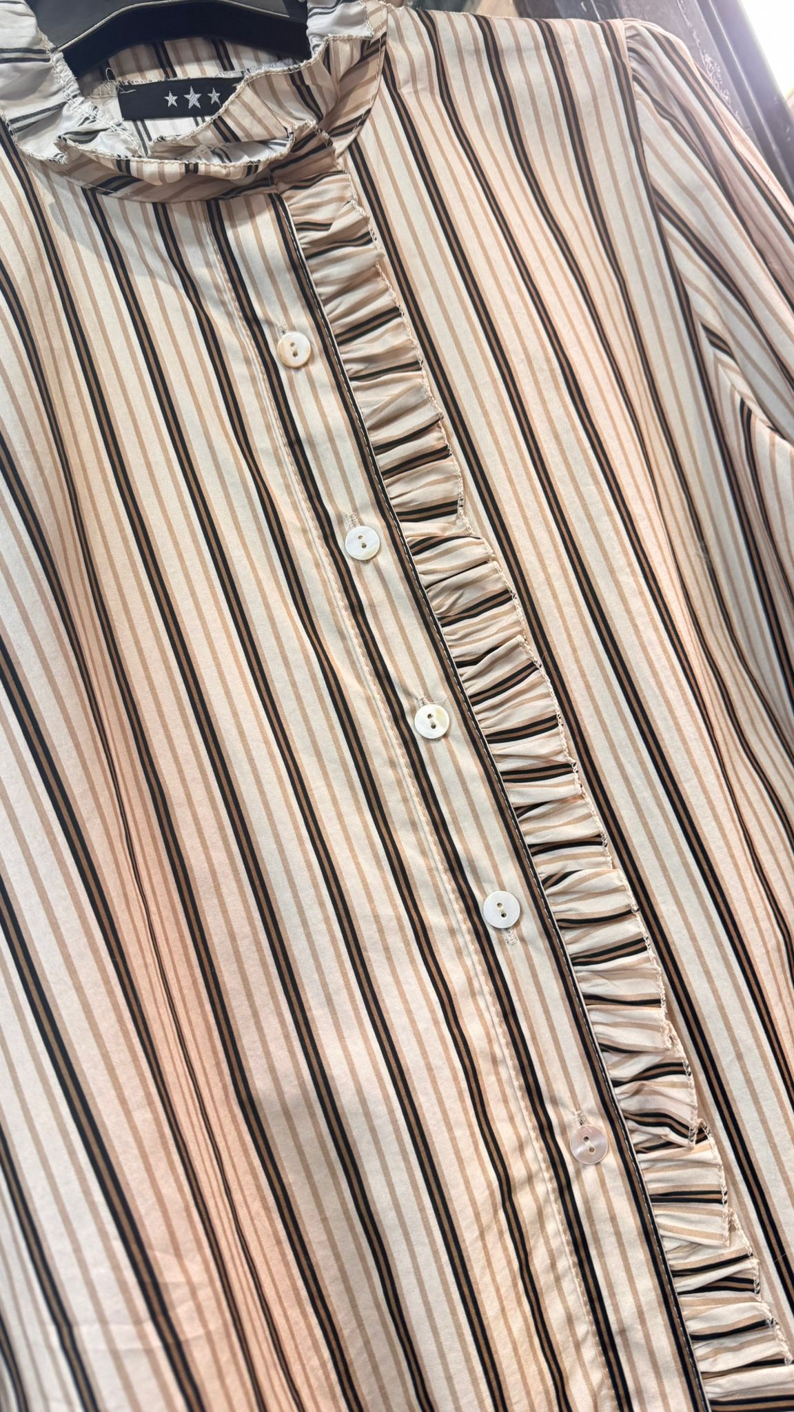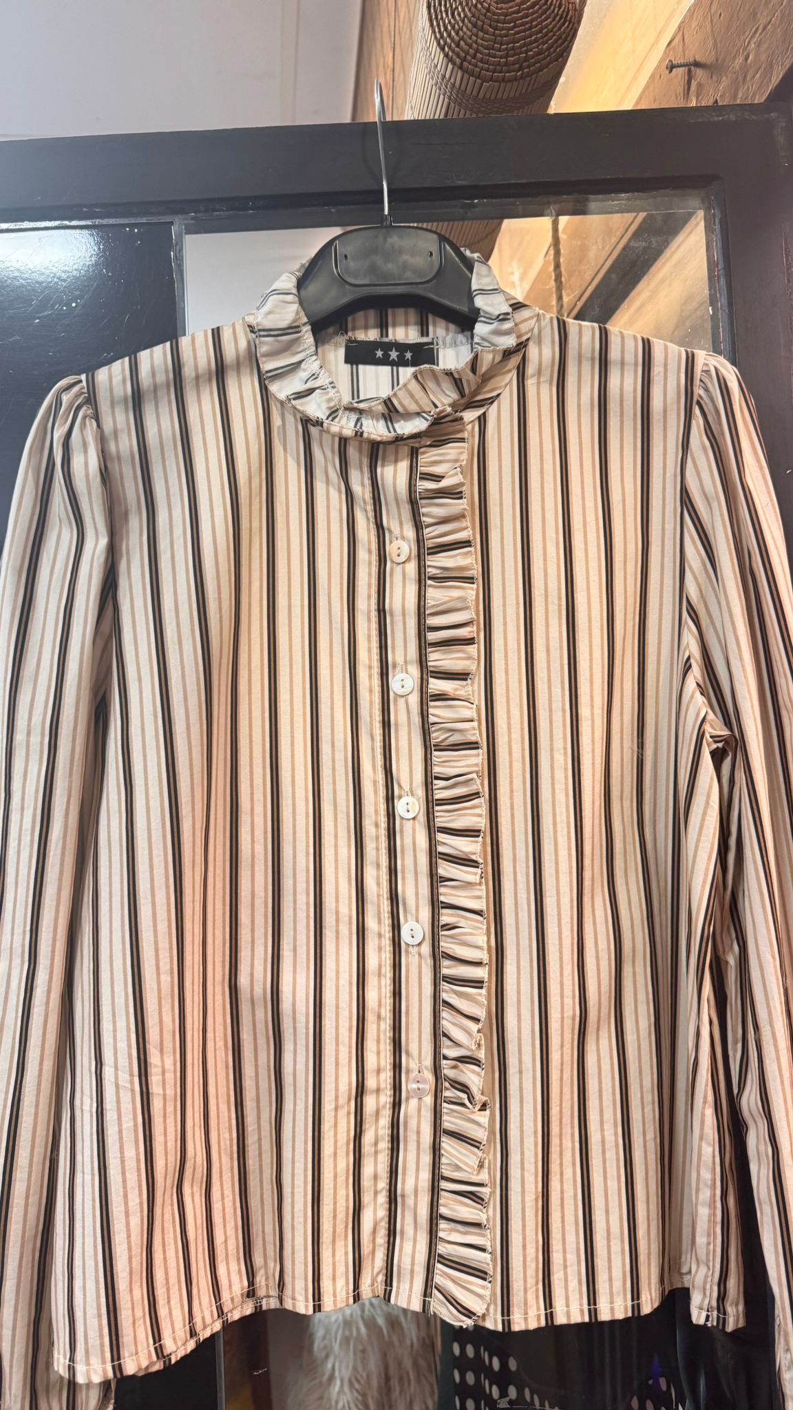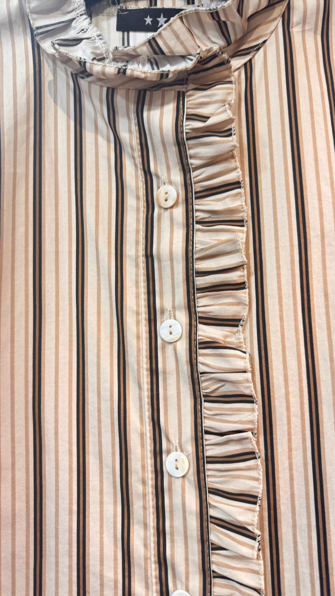 Camisa ideal manga larga con terminación en volantito. Como podéis ver en video y fotos lleva un pequeño volante en la parte delantera y cuello.