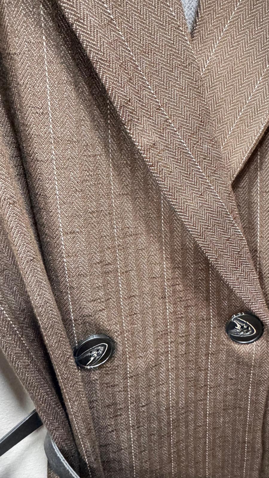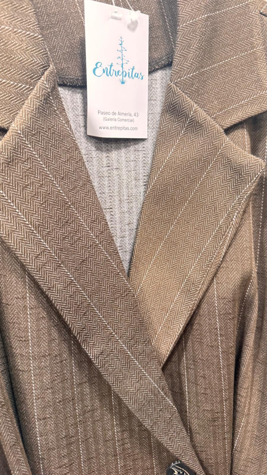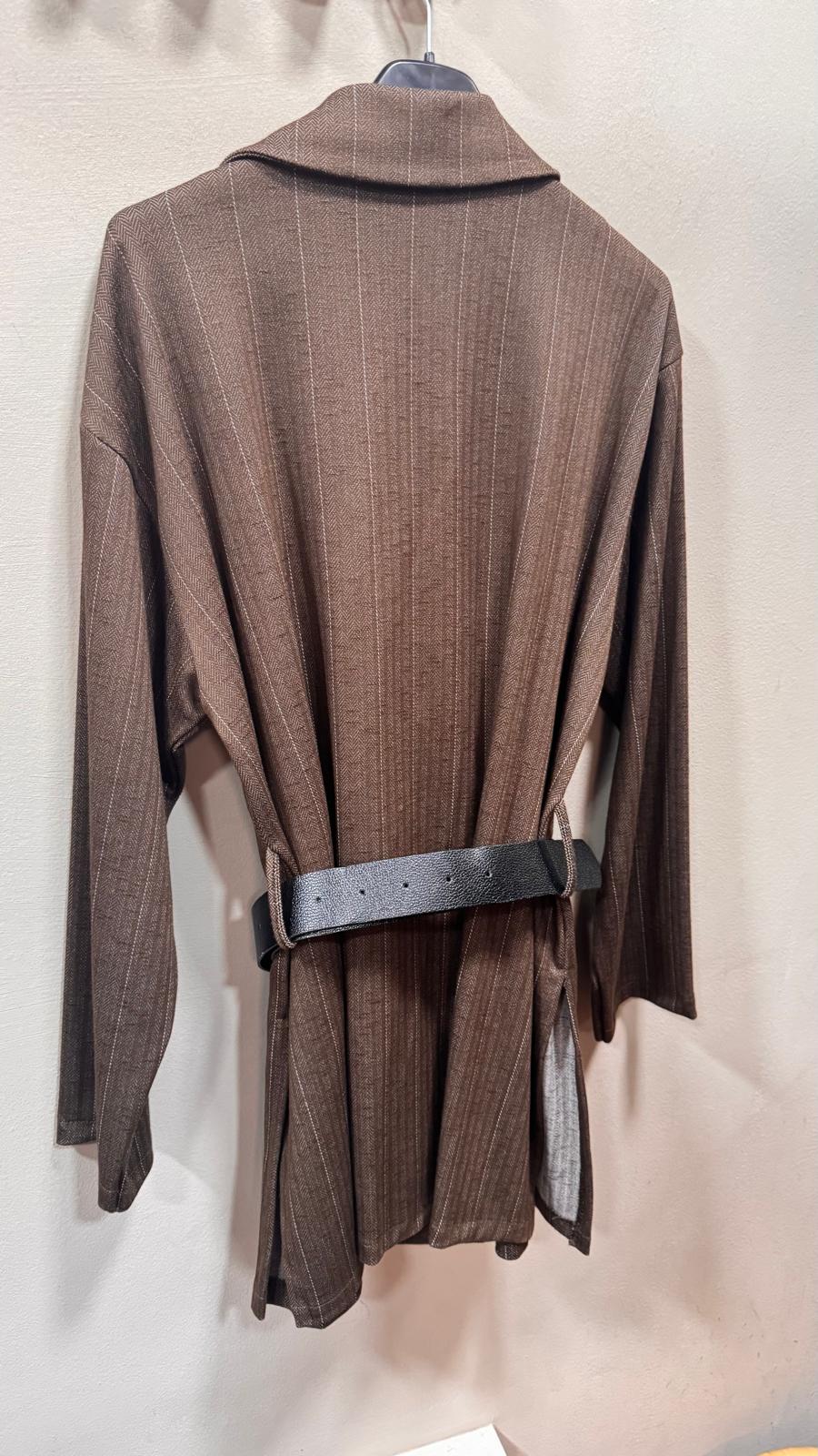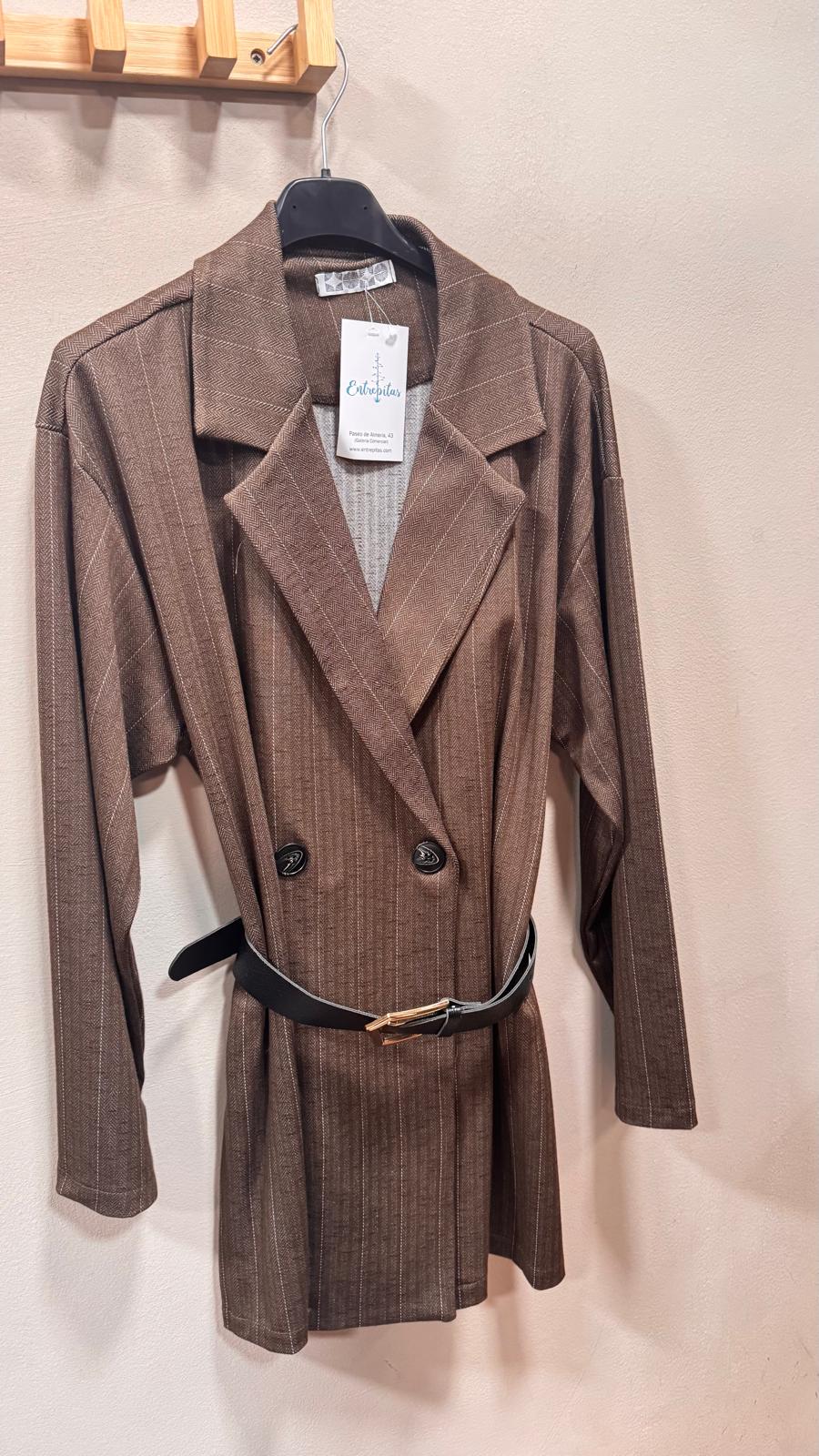Chaqueta Cruzada con solapa y manga larga. Cinturón de poli piel.