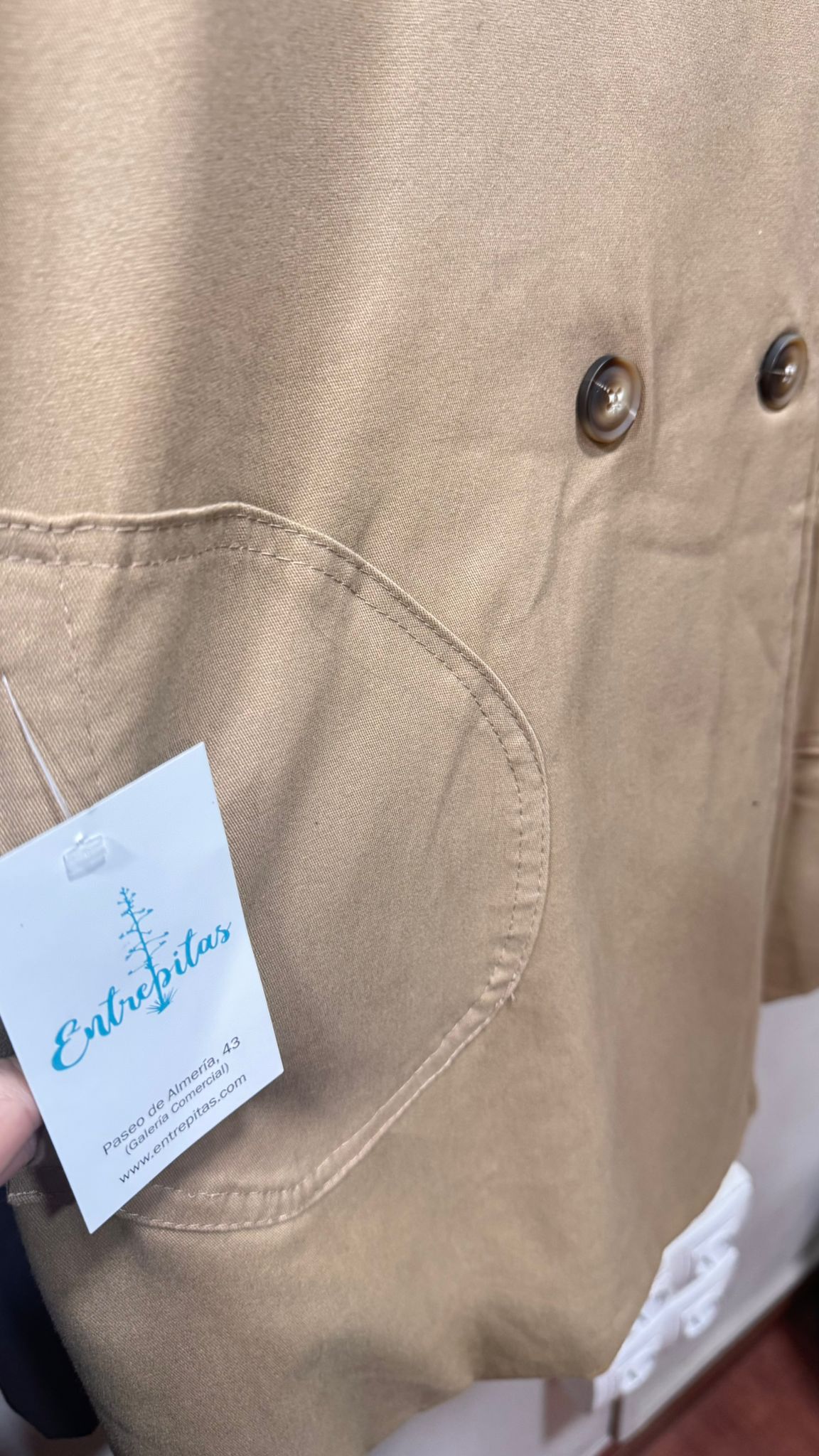Gabardina ideal 3/4 con botones y forrada interior. Manga larga y bolsillos.